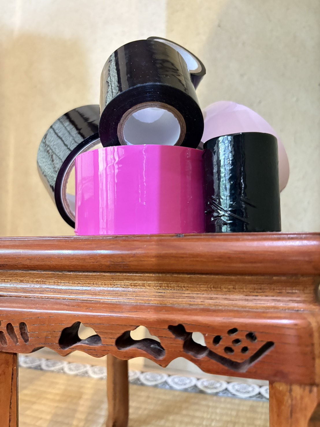 拘束テープ(ボンテージテープ)は、初心者にも扱いやすいSMプレイ用の拘束アイテムで、粘着剤を使わず肌に優しく巻き付けることができます。