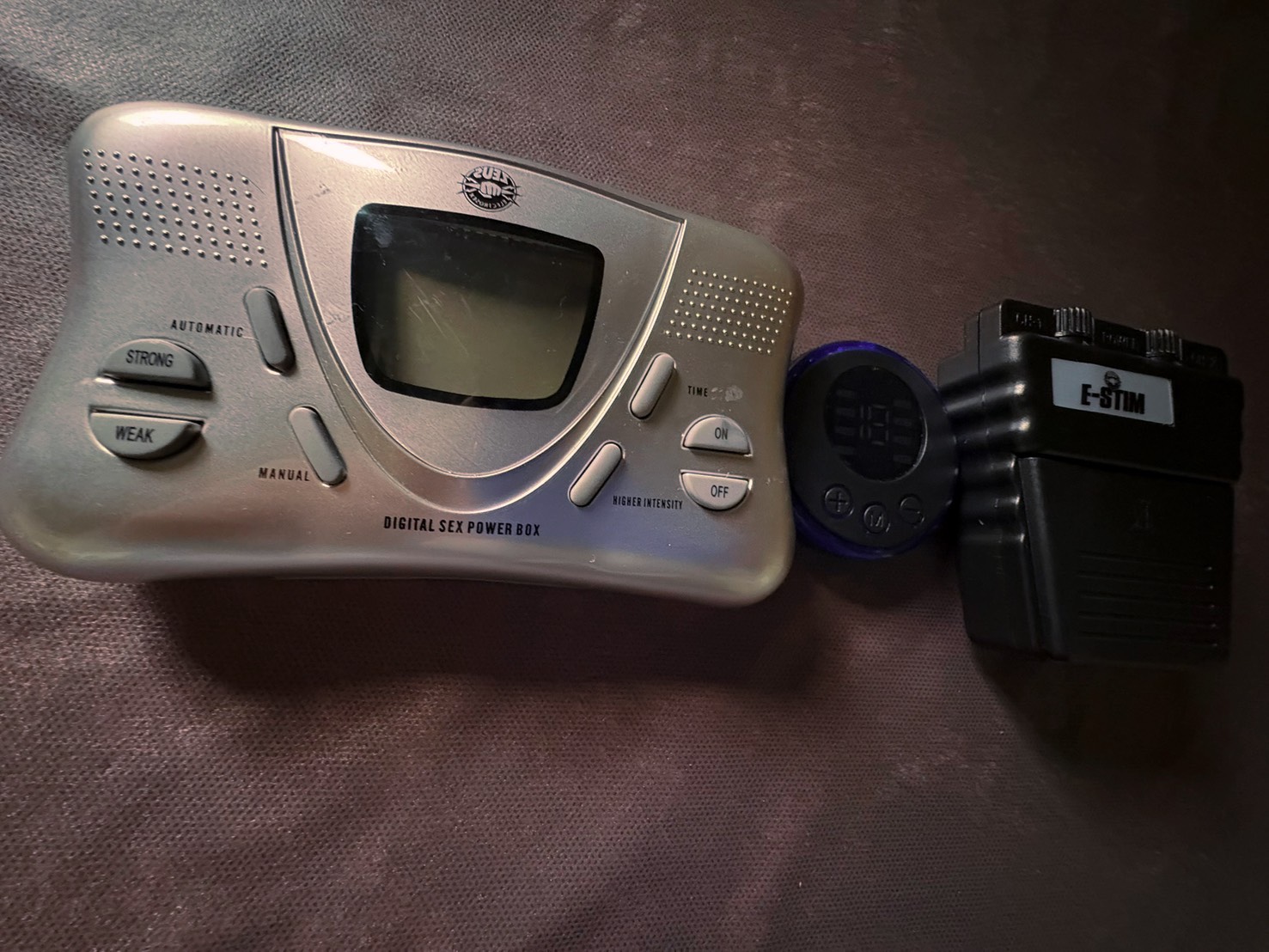 SMプレイの中でもエレクトロプレイ(電気刺激プレイ)**に使われる高度な装置です。複数の電極やパッドを使用し、1つ2つの独立した出力(チャンネル)で身体の異なる部位に電気刺激を与えることが可能。